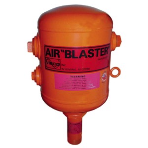 The VIBCO Air Cannon consists of a high pressure tank storing compressed air (80 to 125 PSI) and a quick release piston valve that, on command, instantly releases compressed air into the bin or silo to fluidize material. A VIBCO Air Cannon can be used to solve a variety of bin material flow problems:
